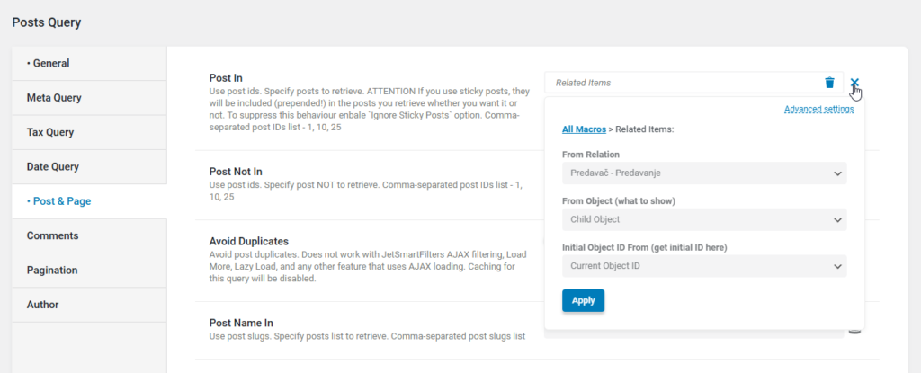 Kako postaviti Custom Query da bi prikazivao ispravno listu predavanja pridruženih predavaču (i obrnuto).
